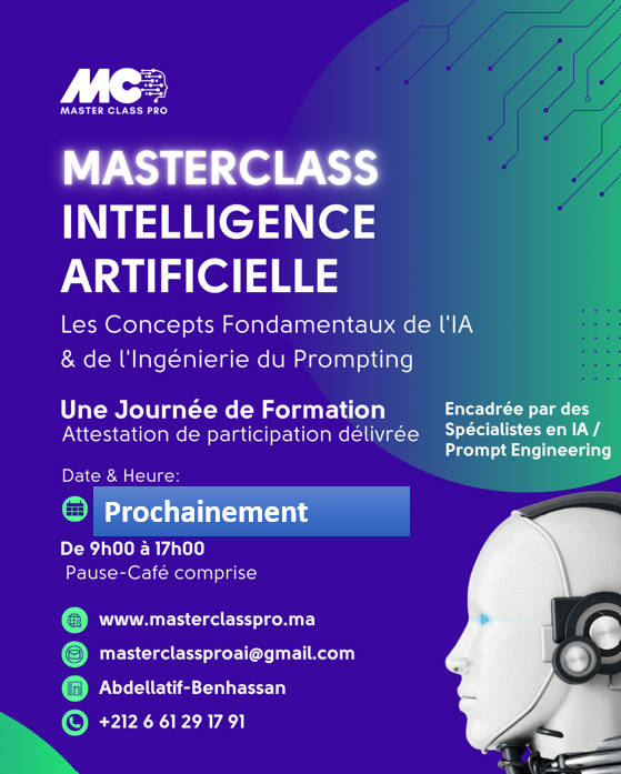 L'équipe Master Class Pro est vraiment professionnelle et attentive. Les formations sur l'IA sont à jour et en phase avec les dernières innovations.